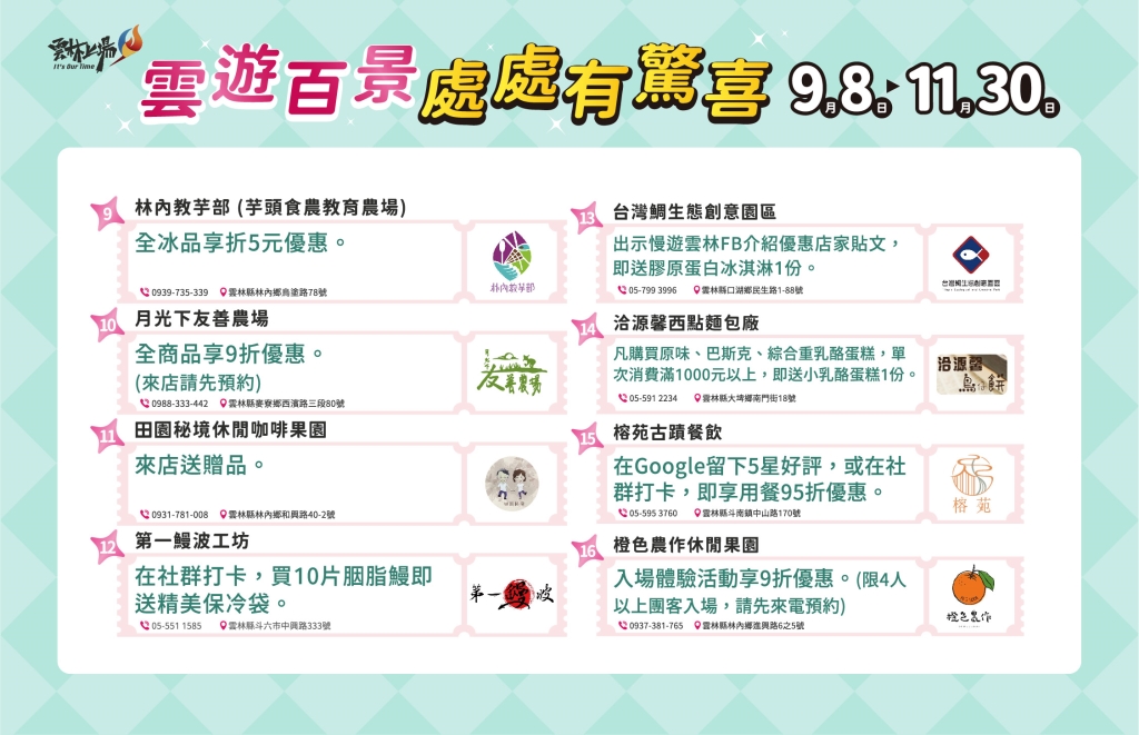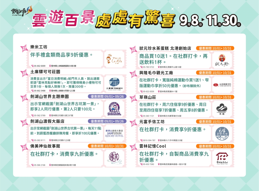 (三)雲林100亮點尋寶趣:自9月30日至115年3月1日,配合「周周主打星」專文,