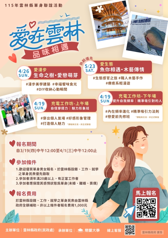 雲林縣政府辦理115年「愛在雲林品味相遇」單身聯誼活動